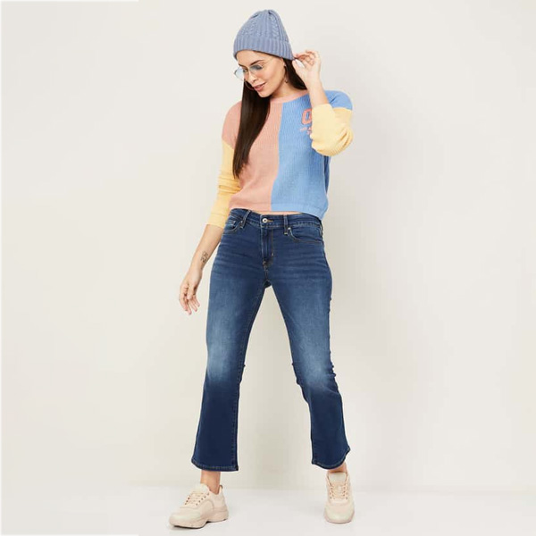 Women Stonewashed Skinny Fit Bootcut Jeans