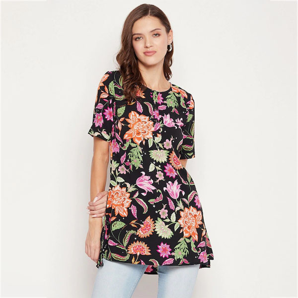 Black & Pink Floral Printed Tunic