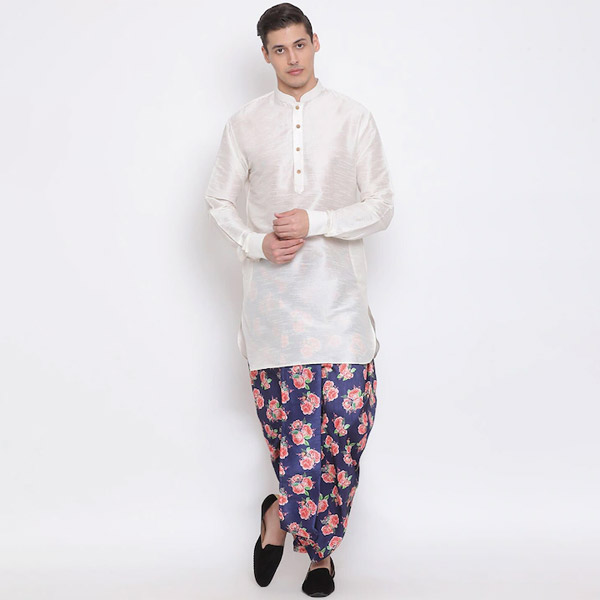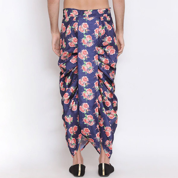 - Navy blue dhoti pants with intricate embroidery detailing, has an elasticated waistband with slip-on closure